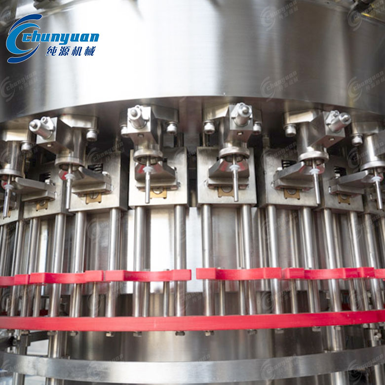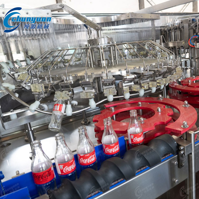 可乐汽水设备可靠:整机采用卡瓶颈悬挂运行工态设计,克服了由于瓶壁薄、瓶高度误差而引起的机器不能正常运转的因素,更换瓶型方便快捷。