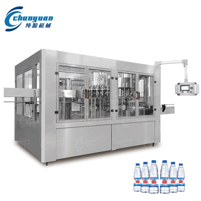 全自动饮用水精品麻豆视频网机械采用卡瓶颈传动技术,实现全自动冲瓶、精品麻豆视频网、旋盖等工序,自动化程度高。