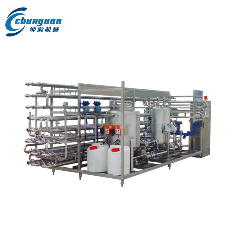 果汁前处理设备UHT管式高温灭菌机可根据用户对不同物料的加热、杀菌、保温、冷却的不同工艺要求,进行不同的流程组合设计,满足工艺要求,具有各种安全保护措施和高温报警,低温回流之功能,UHT管式高温灭菌机的配置相应的高精度的自动控制系统。由于气泡周围的液体高速冲入气泡,而在气泡附近的液体中产生了强烈的局部激波,也形成了局部的高温高压,从而产生了超声的杀菌、清洗、粉碎、乳化、分散、促进化学反应等一系列的作用。